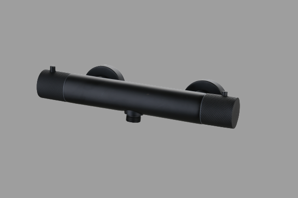 Douchemengkraan thermostatisch Mat Zwart met geribbelde knop