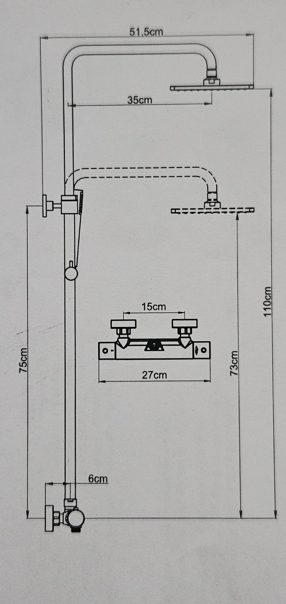 - Hoofddouchekop:20 cm