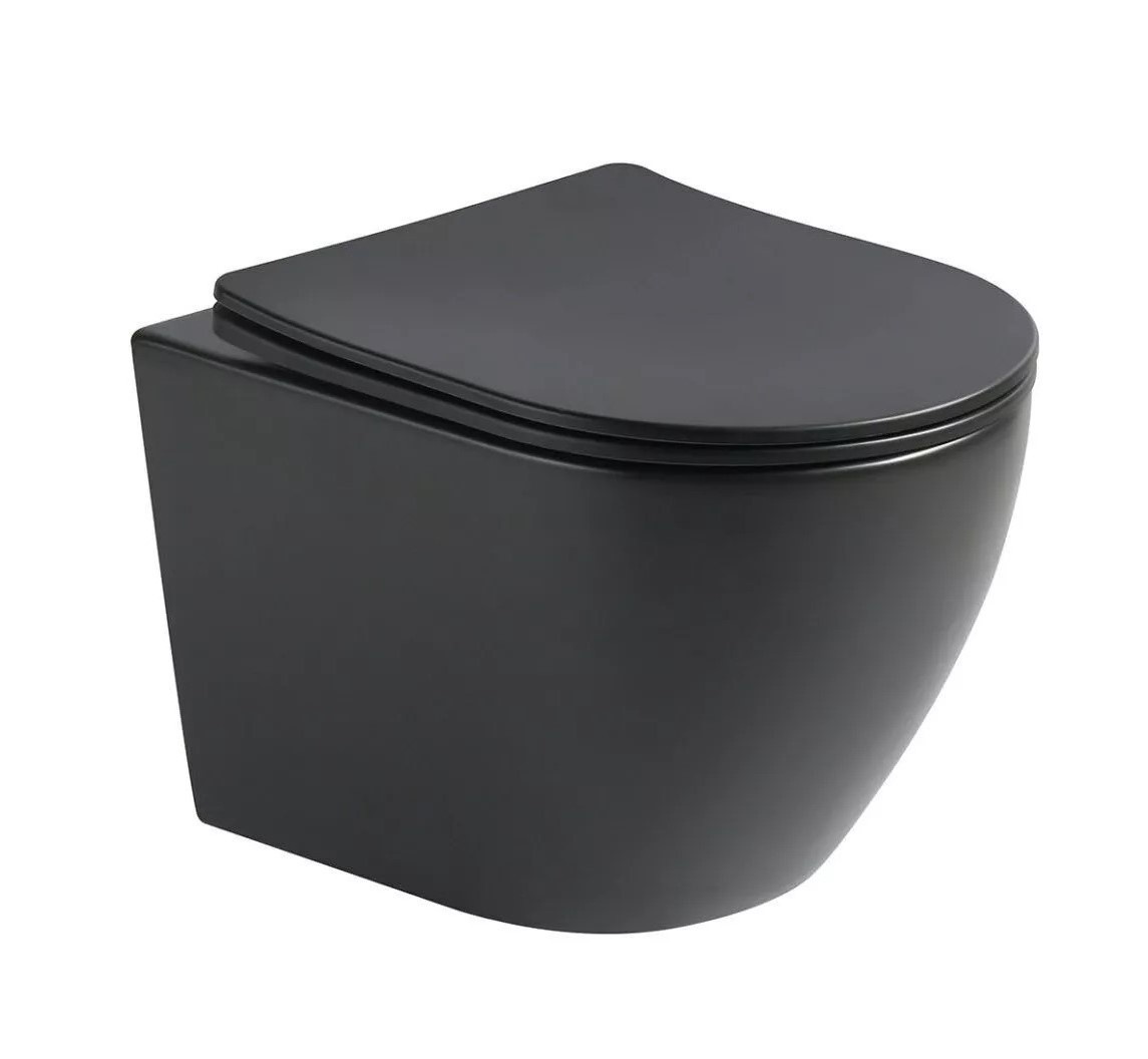 Wandcloset Color Line rimfree compact Mat Zwart met toiletzitting softclose en quickrelease